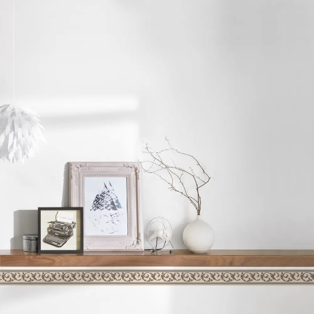 Mit der A.S. Création Tapetenbordüre 259110 setzen Sie stilvolle Akzente an Wand und Decke. Das klassische Barock-Design in Braun und Beige wirkt elegant und zeitlos und lässt sich harmonisch in Wohnzimmer, Schlafzimmer oder Büro integrieren.