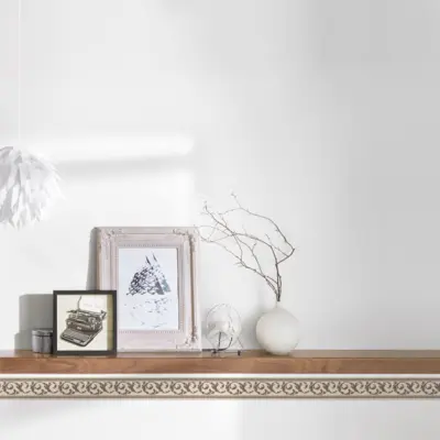 Die Bordüre ist aus Vinyl gefertigt und besitzt eine matte, strukturierte Oberfläche. Das sorgt für eine edle Optik und eine angenehme Haptik. Gleichzeitig ist sie hoch waschbeständig und damit ideal für Bereiche, in denen Wände gelegentlich gereinigt werden sollen.