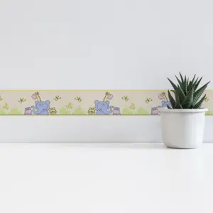 Mit der A.S. Création Tapetenbordüre 280916 gestalten Sie Kinderzimmerwände schnell und wirkungsvoll. Die frische Farbkombination aus Gelb, Blau und Grün bringt Leichtigkeit in den Raum und setzt einen klaren Akzent – ideal als Abschlusslinie, zur Auflockerung großer Wandflächen oder als dekorativer Rahmen.