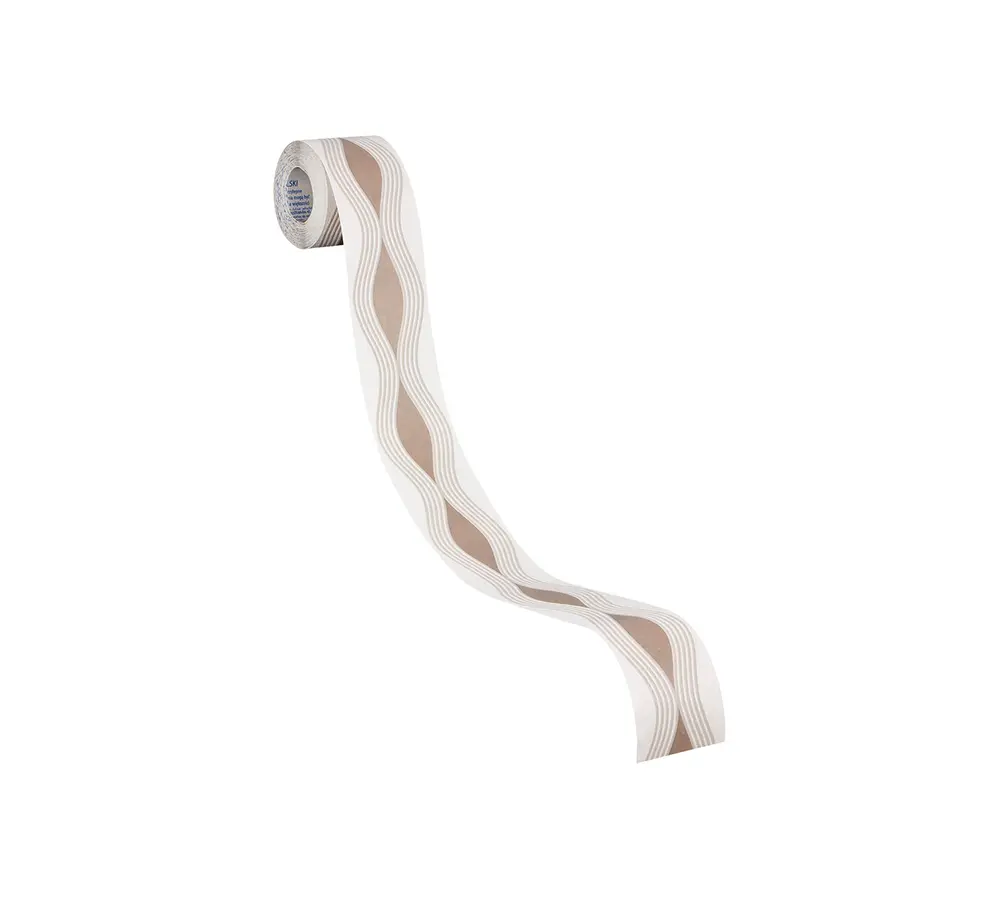 Die Bordüre ist aus mattem, strukturiertem Vinyl gefertigt und auf ein selbstklebendes Papier-Trägermaterial aufgebracht. Dadurch gelingt das Anbringen besonders unkompliziert und sauber. Mit einer Breite von 5 cm (50 mm) und dem Format von 5,00 m x 0,05 m eignet sie sich hervorragend für Kantenabschlüsse, Übergänge oder als schmaler Blickfang entlang von Deckenlinien, Türen oder Möbelbereichen.