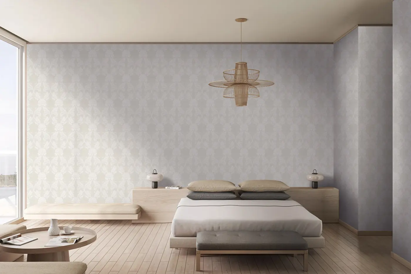 Die Bahnen haben eine Breite von 52 cm und eine Länge von 10,05 m. Mit einem geraden Rapport von 76 cm lässt sich das Muster nahtlos anbringen. Die Vliestapete eignet sich hervorragend für stilvolle Raumgestaltungen im klassischen und barocken Stil.