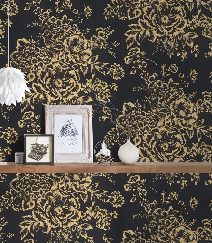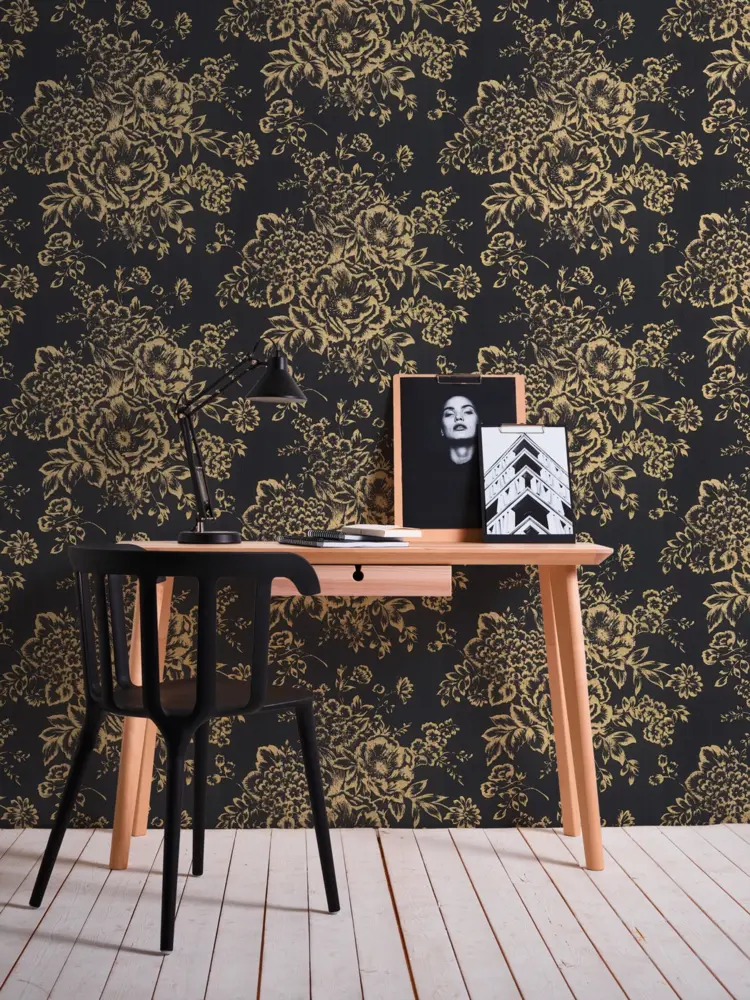 Die Architects Paper Textiltapete 306577 von A.S. Création vereint zeitlose Eleganz mit außergewöhnlicher Qualität. Das florale Design harmoniert ausdrucksstark mit goldenen und schwarzen Farbtönen und bringt eine edle, leicht glänzende Optik an Ihre Wände. Ideal für Wohn- und Schlafzimmer, setzt diese Tapete stilvolle Akzente in jedem Raum.