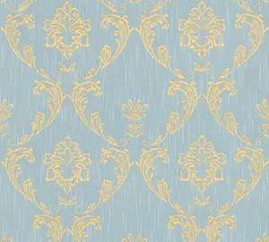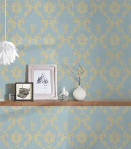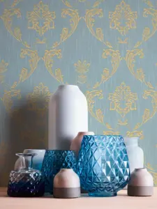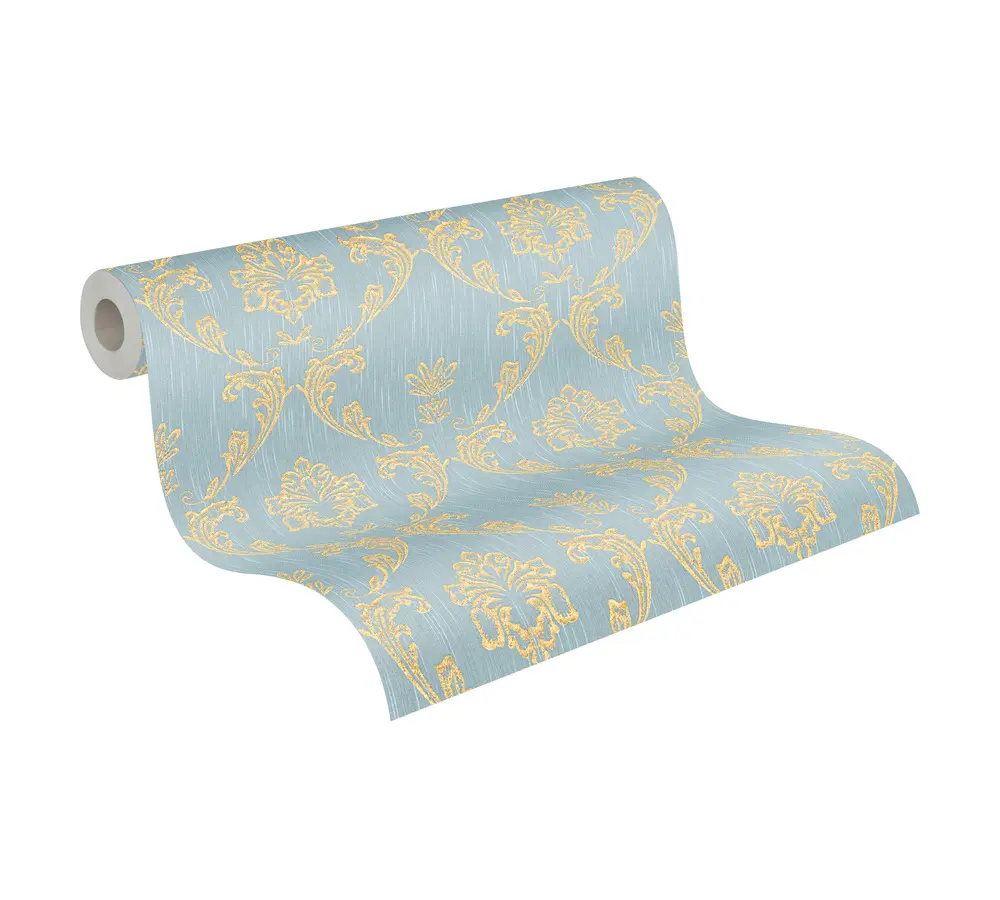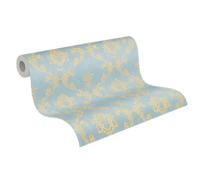 Die Textiltapete 306586 von A.S. Création aus der Kollektion Architects Paper verbindet exklusiven Barockstil mit moderner Eleganz. Die harmonische Farbkombination aus Gold, Blau und Grün setzt stilvolle Akzente an Wand und Decke und verleiht Ihrem Wohn- oder Schlafzimmer ein luxuriöses Ambiente.