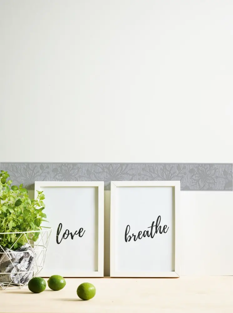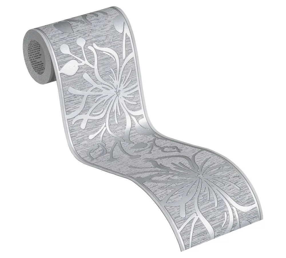 Die A.S. Création Tapetenbordüre 346643 setzt dezente Akzente und verleiht Räumen eine elegante, moderne Note. Das florale Design in Grau mit Metallic-Effekt wirkt stilvoll und lässt sich vielseitig kombinieren – von klaren, modernen Einrichtungen bis hin zu romantischen Wohnkonzepten.