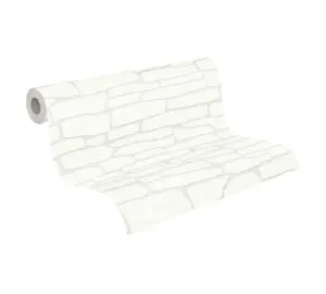 A.S. Création Vliestapete 355515 – Moderne Steinoptik in Weiß