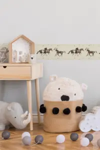 Mit der A.S. Création Bordüre 358382 gestalten Sie Wände im Kinderzimmer liebevoll und harmonisch. Die matte Bordüre in Creme und Braun mit violetten Akzenten bringt verspielte Tiermotive ins Zimmer, ohne aufdringlich zu wirken – ideal als dekorativer Abschluss, Akzentstreifen oder zur optischen Gliederung von Wandflächen.