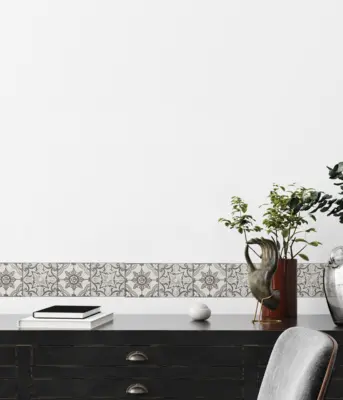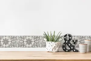 Mit der A.S. Création Tapetenbordüre 365161 setzen Sie klare, grafische Akzente an Wand und Decke. Das Fliesen-Design in Schwarz, Weiß und Grau wirkt modern und strukturiert Räume optisch – ideal, um Übergänge, Kanten oder einzelne Flächen gezielt hervorzuheben.