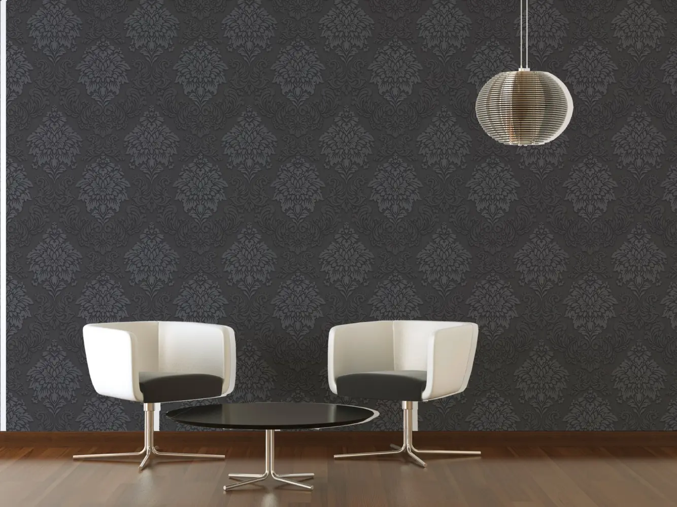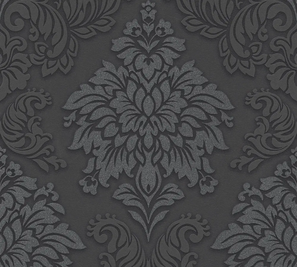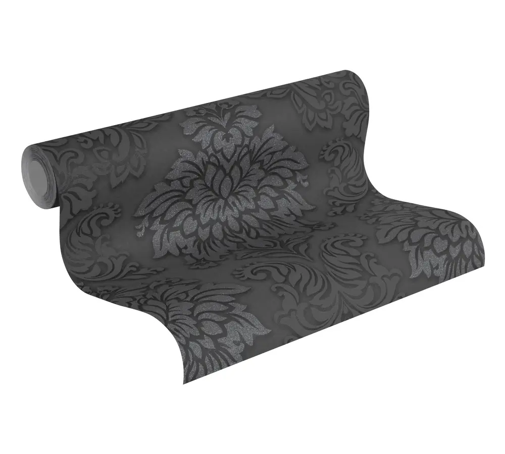 Die hochwertige Livingwalls Vliestapete 368984 von A.S. Création verleiht jedem Raum eine exklusive und stilvolle Atmosphäre. Mit ihrem klassischen Barockdesign sorgt sie für einen Hauch von Luxus und Eleganz. Die Farbkombination aus Schwarz, Silber und dezenten Grautönen hebt das leicht glitzernde Muster besonders hervor und schafft beeindruckende Akzente an Ihren Wänden.