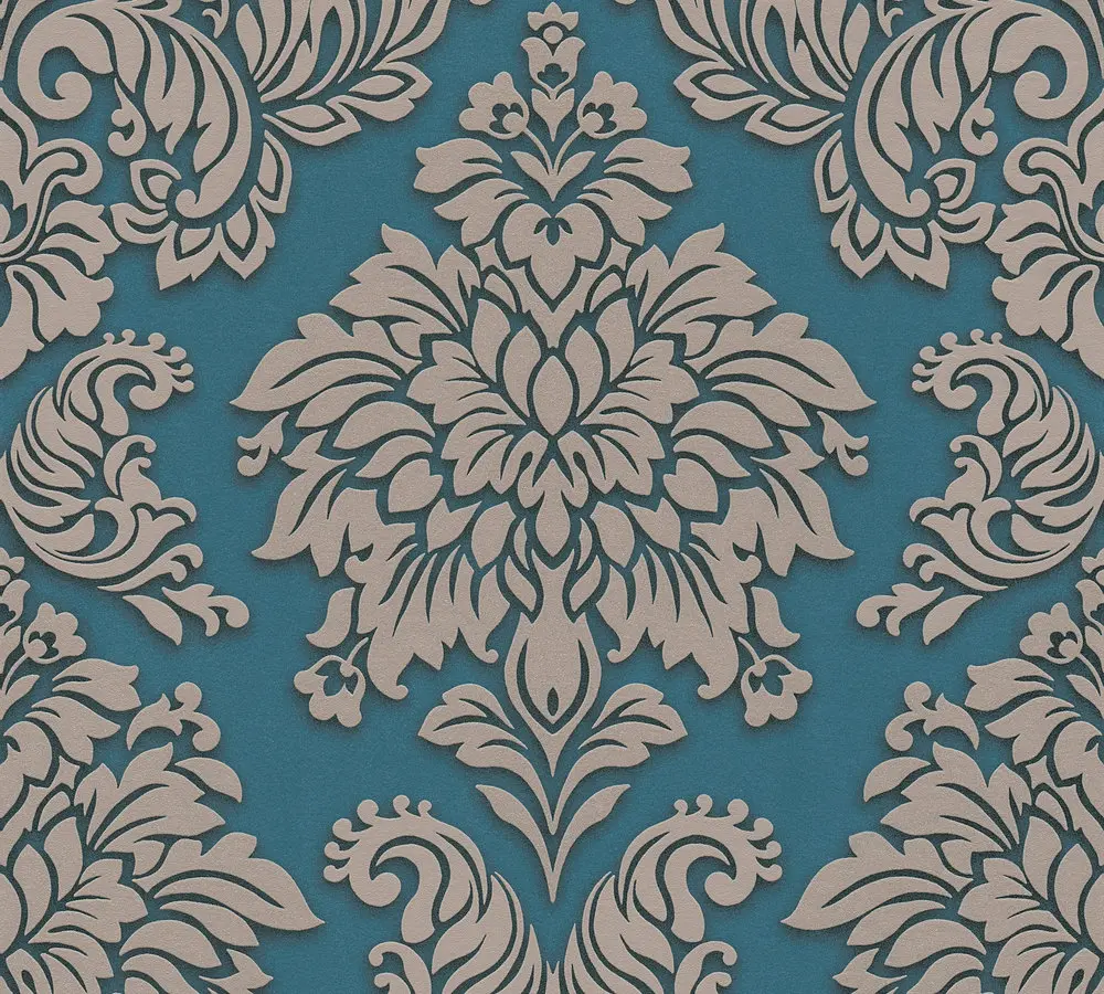 Die A.S. Création Vliestapete 368985 vereint klassisches Barock-Design mit moderner Farbgebung. In edlem Türkis, Silber und Beige gestaltet, verleiht diese Tapete Ihren Wohnräumen eine stilvolle und zeitlose Atmosphäre. Das leicht glitzernde Oberflächenfinish sowie die dezente Struktur unterstreichen die hochwertige Optik und sorgen für einen Hauch von Luxus.