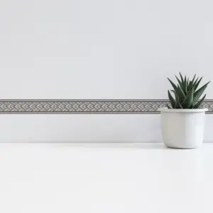 Ob Wohnzimmer, Schlafzimmer oder Büro: Die glatte Vinyl-Oberfläche unterstreicht die klare Kontur der Bordüre und lässt das Muster ruhig und harmonisch wirken. Mit den Maßen 5,00 m x 0,04 m eignet sie sich besonders für schmale, präzise Zierlinien, zum Beispiel entlang von Deckenabschlüssen oder als dekorative Trennung zwischen zwei Wandbereichen.