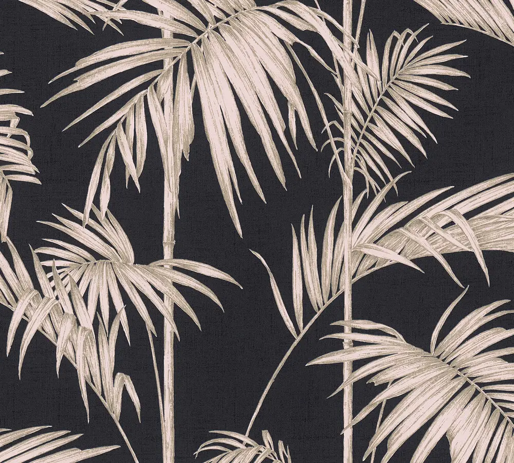 Die A.S. Création Livingwalls Vinyltapete 369191 bringt stilvolle Wohnakzente in Ihre Räume. Mit ihrem einzigartigen Palmenmuster in den Farben Schwarz, Rosa und Bronze verleiht sie jedem Raum ein modernes und elegantes Ambiente. Die leicht glänzende Oberfläche unterstreicht das edle Design und sorgt für besondere Lichteffekte an Ihren Wänden.