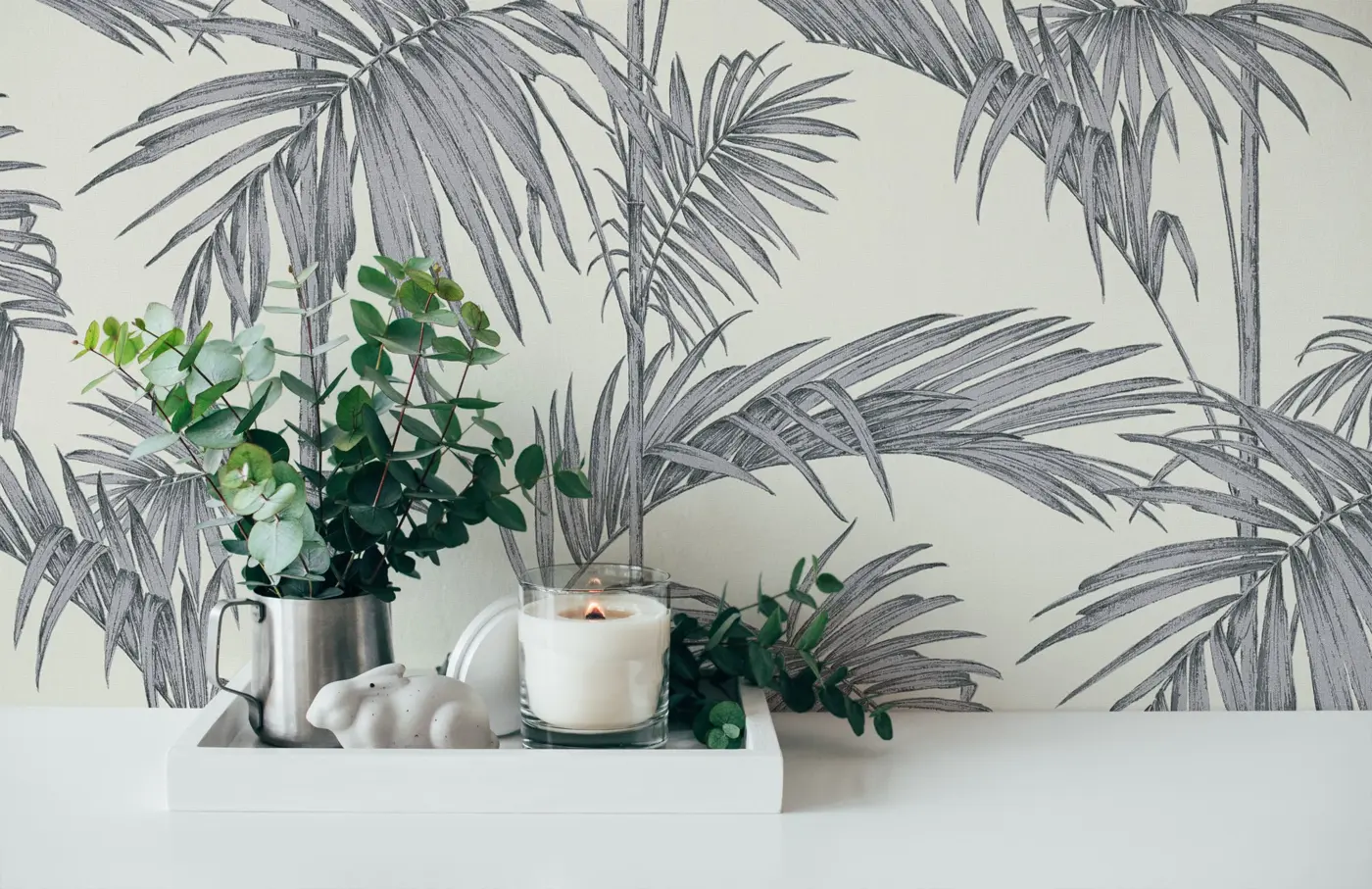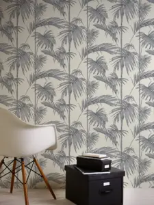 Die A.S. Création Vinyltapete 369192 setzt einzigartige Akzente und verleiht Ihren Räumen ein modernes, exklusives Ambiente. Das stilvolle Palmenmotiv in den Farbtönen Grau, Silber und Weiß sorgt für einen dezenten, leicht glänzenden Look, der vielseitig kombinierbar ist und für Frische sowie zeitlose Eleganz steht.
