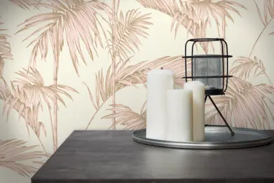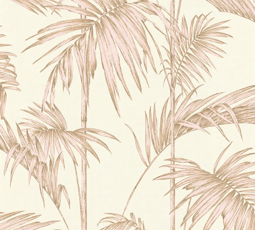 Die Vinyltapete 369193 von A.S. Création vereint modernes Design mit hoher Funktionalität. Ihr ausdrucksstarkes Palmenmotiv in zarten Rosé-, Beige- und Cremetönen verleiht jedem Raum eine elegante, entspannte Atmosphäre. Die leicht glänzende Oberfläche sorgt für eine besondere Ästhetik und setzt dekorative Akzente an Wand und Decke.