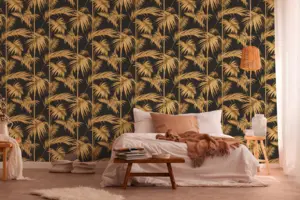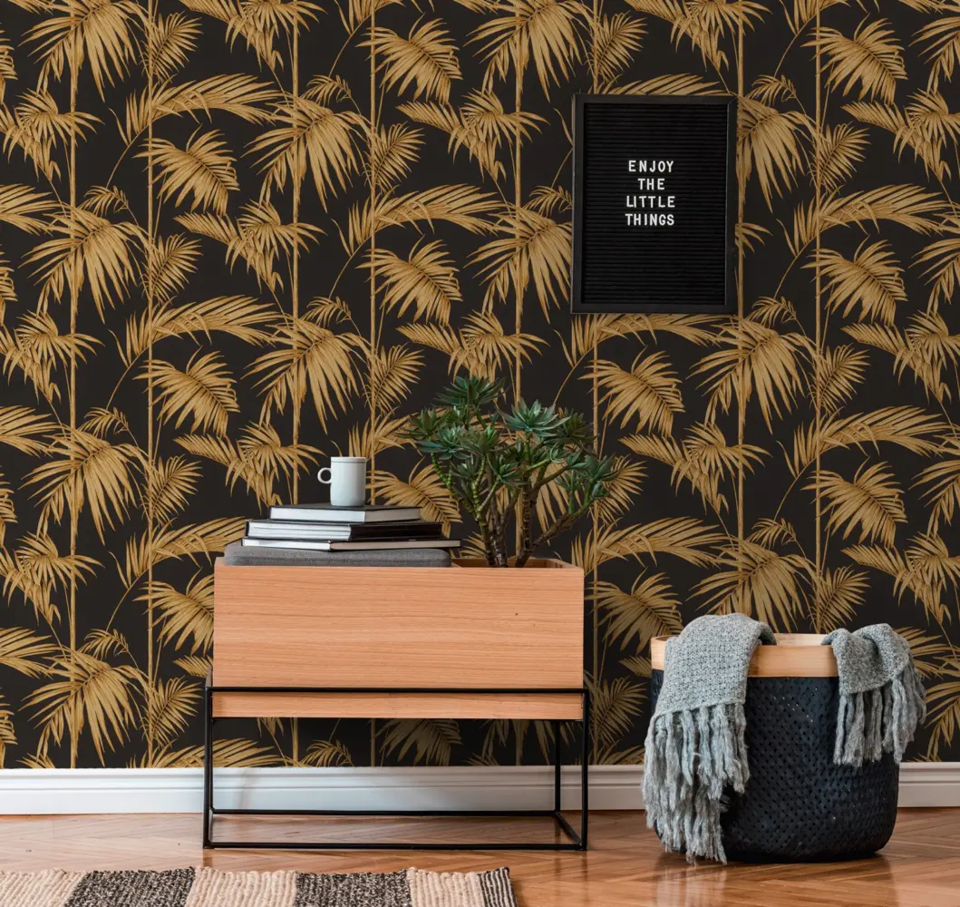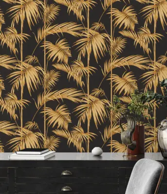 Livingwalls Vinyltapete 369195 – Gold Schwarz Palmentapete
