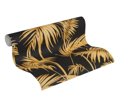 Erleben Sie stilvolle Raumgestaltung mit der A.S. Création Vinyltapete 369195. Das exotische Palmen-Design in Gold, Schwarz und Orange verleiht Ihren Wänden einen modernen und eleganten Charakter. Die leicht glänzende Oberfläche, kombiniert mit einer glatten Struktur, setzt stilvolle Akzente und sorgt für ein hochwertiges Erscheinungsbild in jedem Raum.
