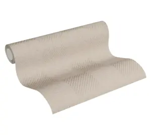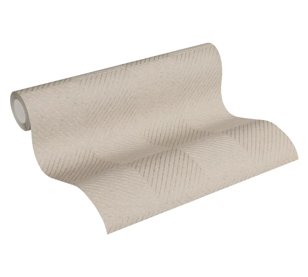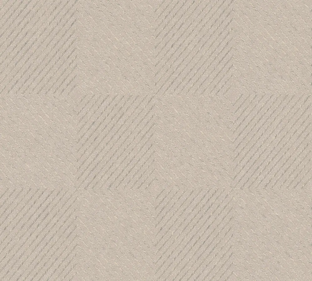 Die Vinyltapete 369262 von A.S. Création präsentiert sich mit einem ansprechenden geometrischen Design in den Farben Beige und Silber. Diese Kombination sorgt für eine elegante und moderne Raumgestaltung und setzt stilvolle Akzente an jeder Wand.