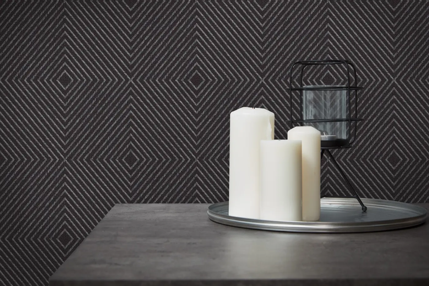 Die Livingwalls Vinyltapete 369265 überzeugt mit einem modernen geometrischen Design in edlem Schwarz und Silber. Die leicht glänzende Oberfläche und der dezente Glanz verleihen jedem Raum ein exklusives Ambiente. Dank ihrer leichten Struktur sorgt die Tapete für eine angenehme Haptik und besondere Tiefenwirkung an der Wand.