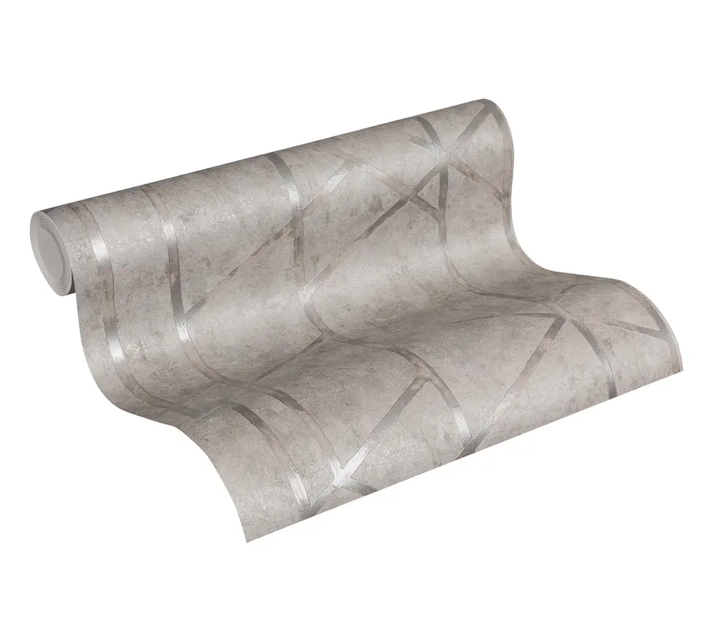 Moderne Vinyltapete in Grau-Silber mit Geometrischem Design
