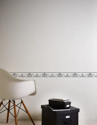 Für vielseitige Einsatzmöglichkeiten konzipiert, passt die Bordüre in Wohnzimmer, Schlafzimmer, Küche oder Badezimmer und bringt dort eine klare, grafische Note an Wand und Decke.