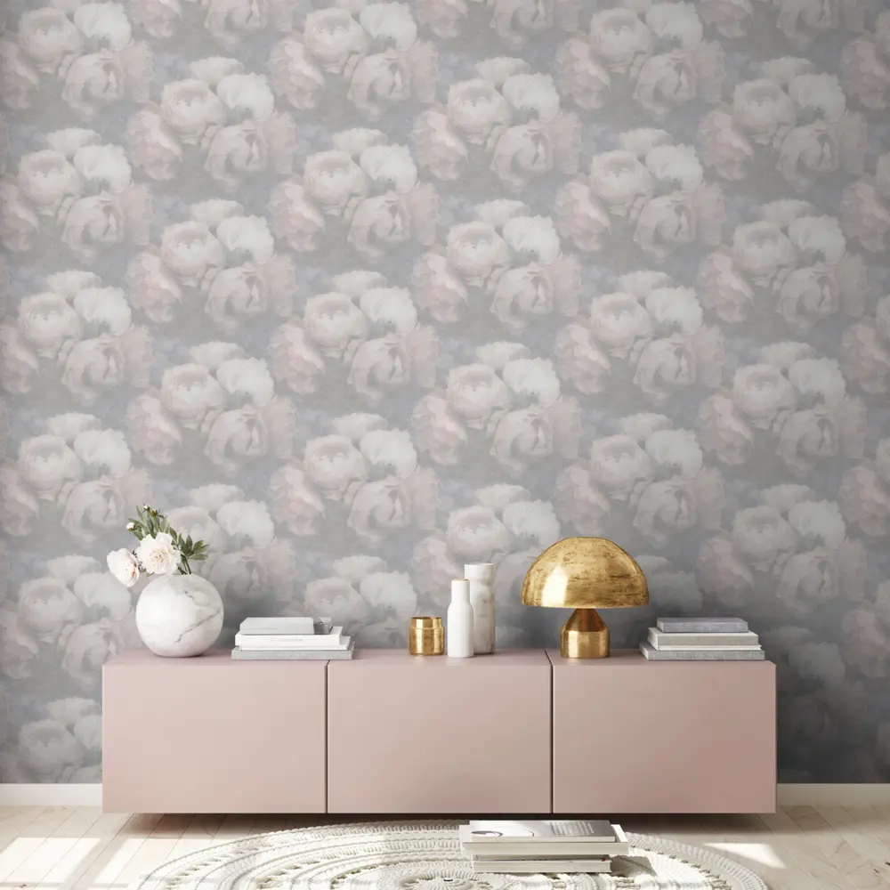 Livingwalls Vinyltapete 373923 – Stilvolles florales Design in Grau und Rosa