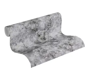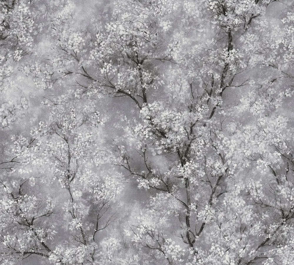 Vinyltapete 374201 von A.S. Création – Stilvolles Waldmotiv in Grau und Schwarz