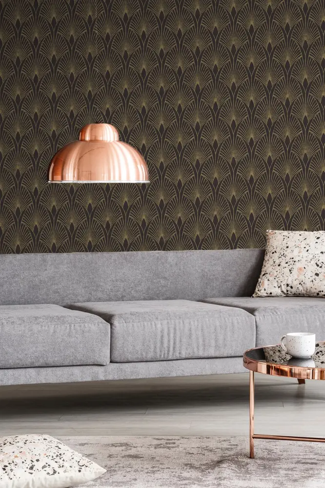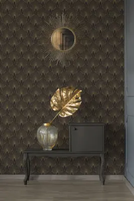 Die Vinyltapete 374273 von A.S. Création begeistert mit ihrem stilvollen Art Deco Motiv in Schwarz und Gold. Die Oberfläche ist leicht glänzend und dezent strukturiert, was dem Raum eine raffinierte Note verleiht. Durch die Kombination aus hochwertigem Vinyl und stabilem Vliesträger ist die Tapete strapazierfähig und formstabil. Sie eignet sich ideal für Schlaf- und Wohnzimmer und setzt dort exklusive Akzente.
