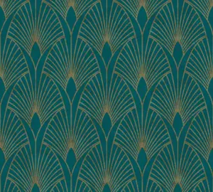 Die A.S. Création Vinyltapete 374275 überzeugt mit einem eleganten Art Deco Muster in harmonischen Blau-, Gold- und Grüntönen. Mit einer Breite von 53 cm und einer Länge von 10,05 m bietet sie vielfältige Gestaltungsmöglichkeiten für Wohn- und Schlafräume. Die leicht glänzende, strukturierte Oberfläche bringt einen edlen Akzent an jede Wand.