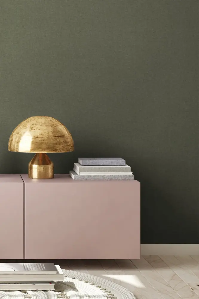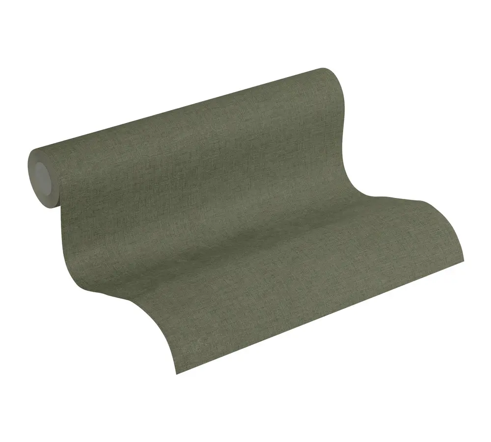 Mit ihrer matt-grünen Optik und der dezenten Struktur schafft die Tapete eine angenehme Wohnatmosphäre – perfekt für alle, die Wert auf Stil und Qualität legen.