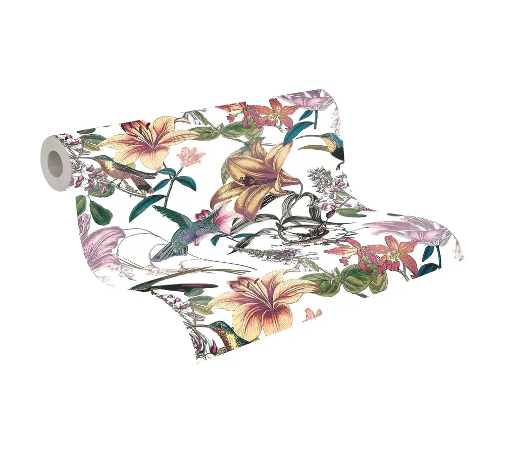 Die A.S. Création Vliestapete 377011 aus der Reihe Architects Paper verbindet modernes Design mit floralen Elementen und bringt frischen Schwung in jeden Raum. Ihr stilvolles Muster zeigt ein vielseitiges Farbspiel aus Weiß, Grün, Gelb und Rot, das eine lebendige Atmosphäre schafft und vielfältige Einrichtungsstile ergänzt.