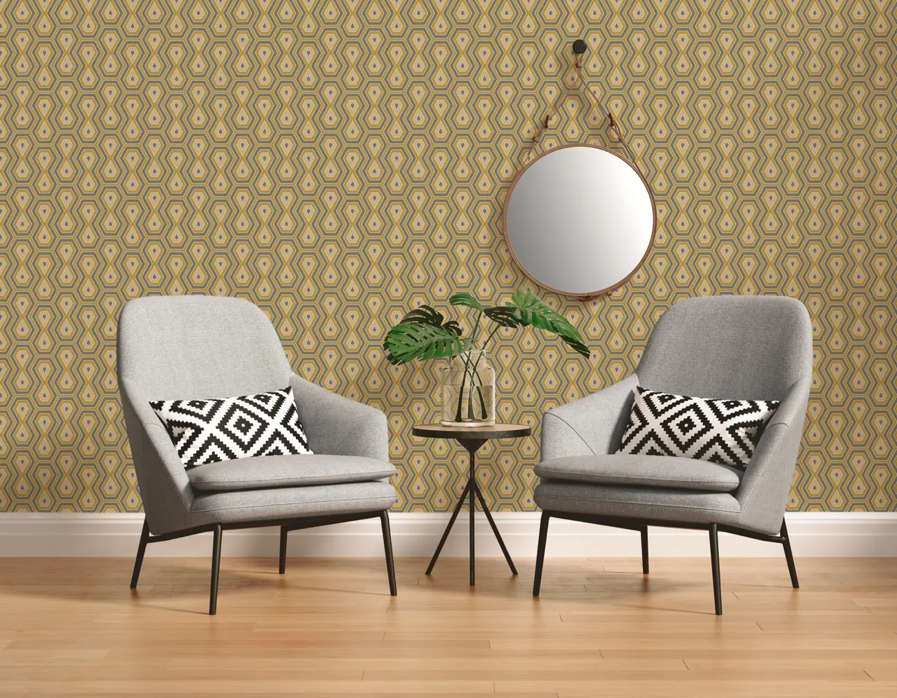 Die Vliestapete 377074 von A.S. Création kombiniert ein modernes Retro-Design in Gelb, Grau und Weiß mit einer matten, glatten Oberfläche. Diese Tapete eignet sich ideal, um Küchen, Schlafzimmer oder Wohnzimmer stilvoll aufzuwerten. Das zeitlose Muster und die hochwertige Verarbeitung sorgen für eine harmonische Raumgestaltung im Vintage-Stil.