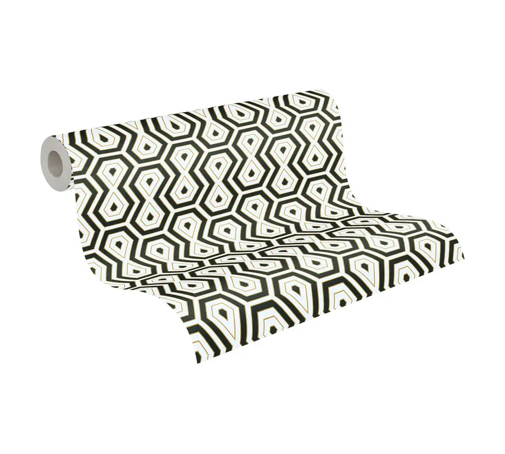 Die Architects Paper Vliestapete 377075 von A.S. Création kombiniert einen trendigen Retro-Look mit zeitloser Eleganz. Die Tapete präsentiert sich in Weiß, Schwarz und Gold, deren harmonisches Zusammenspiel jeder Wand stilvolle Akzente verleiht. Das matte Oberflächenfinish verleiht der glatten Struktur eine dezente Note und schafft eine angenehme Raumatmosphäre.