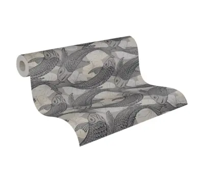 Die A.S. Création Vinyltapete 378593 überzeugt mit einem stilvollen, von japanischer und chinesischer Designästhetik inspirierten Muster in den Farben Schwarz, Weiß, Grau und Creme. Die Kombination aus matter Oberfläche und glatter Struktur sorgt für eine moderne, elegante Optik und ein angenehmes Gefühl an der Wand.