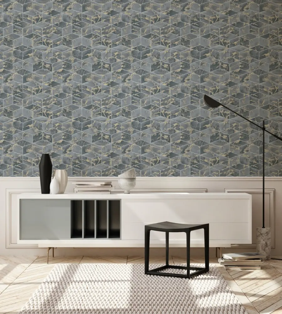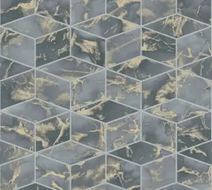 Die Vinyltapete 378634 von A.S. Création aus der Livingwalls-Kollektion vereint modernen Stil mit hochwertiger Verarbeitung. Das faszinierende geometrische Muster in den Farbtönen Grau, Gold und Schwarz setzt stilvolle Akzente an jeder Wand und bringt Eleganz in Wohn-, Schlaf- oder Arbeitsräume.