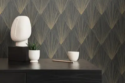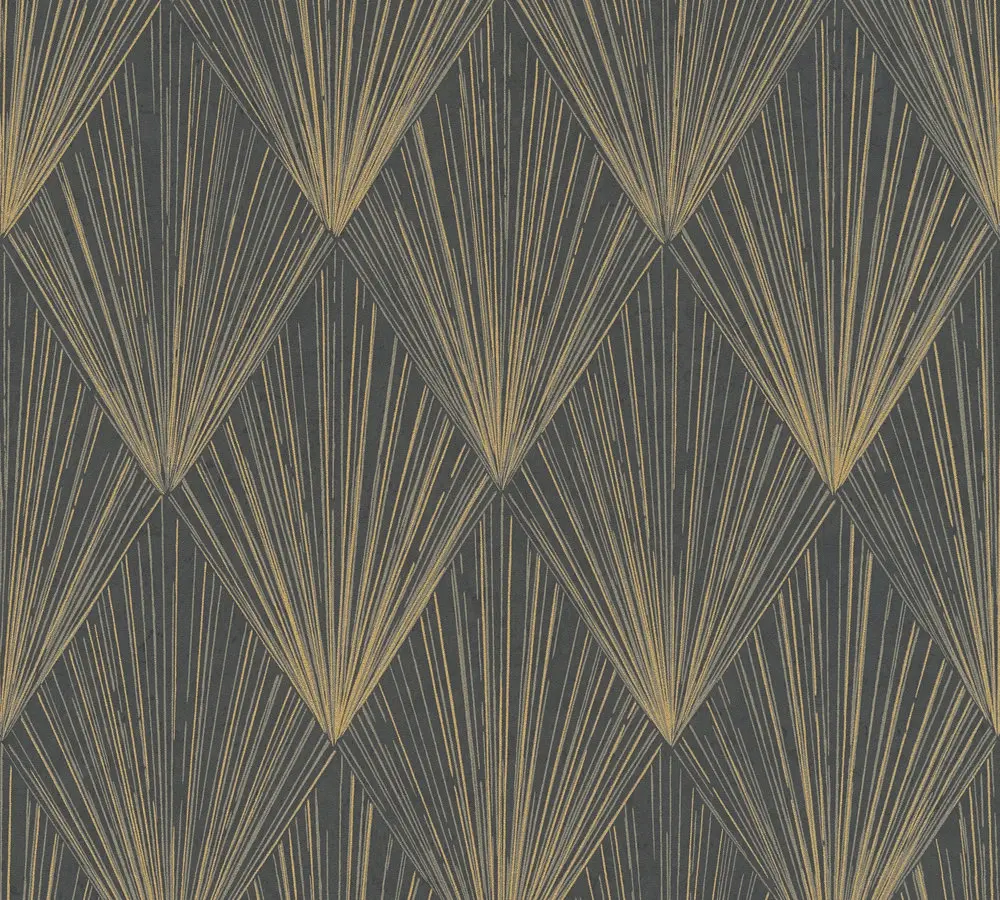 Die A.S. Création Vinyltapete 378644 aus der Livingwalls Kollektion überzeugt durch ihr modernes, geometrisches Design in stilvoller Farbkombination aus Schwarz, Gold und Grau. Die leicht glänzende Oberfläche und die dezente, strukturierte Haptik verleihen jedem Raum eine besondere Tiefenwirkung und Eleganz.