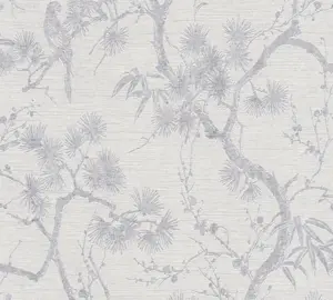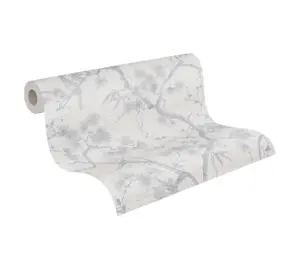 Livingwalls Vliestapete 378673 – Elegante florale Akzente in Silber und Weiß