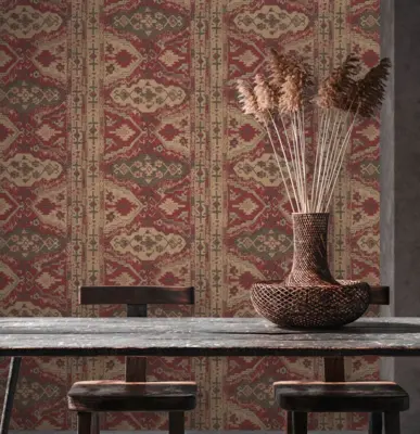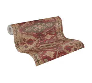 Die A.S. Création Vinyltapete 378681 beeindruckt mit einem faszinierenden, orientalisch inspirierten Muster in den eleganten Farbtönen Rot, Beige und Braun. Die matte Oberfläche und die leichte Struktur sorgen für eine ästhetisch ansprechende Wandgestaltung, die jedem Raum eine besondere Atmosphäre verleiht.