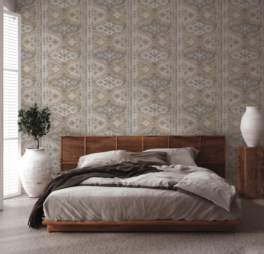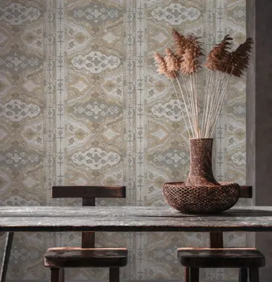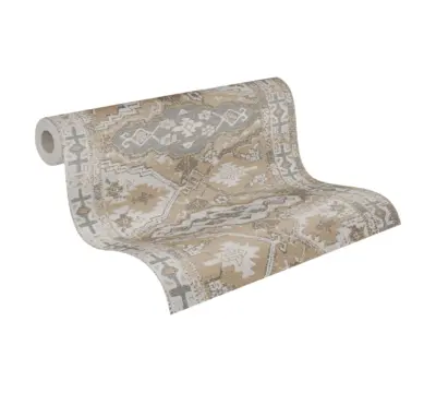 Entdecken Sie die hochwertige Vinyltapete von A.S. Création, Modell 378683, die stilvolle Akzente für Ihre Räume setzt. Das elegante Design in Weiß, Beige, Grau und Braun präsentiert ein modernes orientalisches Muster und sorgt damit für einen Hauch Exotik in jedem Wohnbereich.