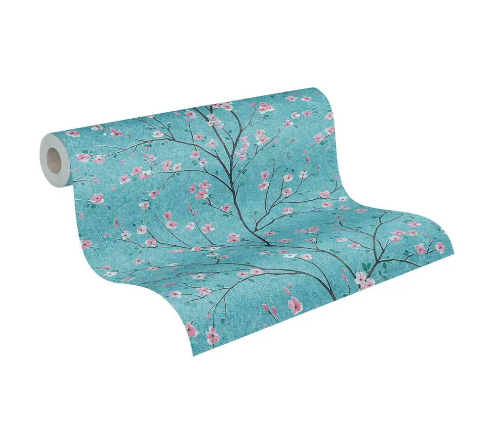 Die Vliestapete 379123 von A.S. Création überzeugt mit einem eleganten Blumenmotiv in den Farbtönen Türkis, Rosa, Schwarz und Grau. Dieses stilvolle Design bringt einen frischen und modernen Akzent an Ihre Wände und eignet sich hervorragend für Wohn-, Schlaf- und Küchenräume.