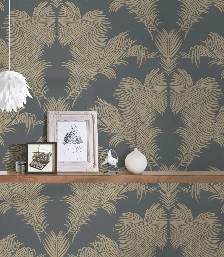 A.S. Création Vliestapete 379593 – Elegante Palmenoptik in Gold und Grau