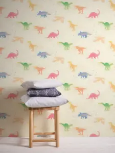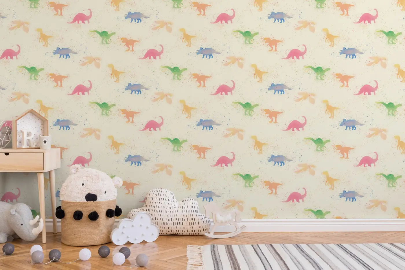 Die A.S. Création Vliestapete 381461 begeistert mit einem fröhlichen Dinosaurier-Design in bunten Beige-, Rosa-, Blau- und Grüntönen und schafft eine fantasievolle Atmosphäre im Kinderzimmer. Das matte Finish und die glatte Oberfläche verleihen der Tapete eine moderne Optik, während das hochwertige Vliesmaterial für Langlebigkeit und einfache Verarbeitung sorgt.