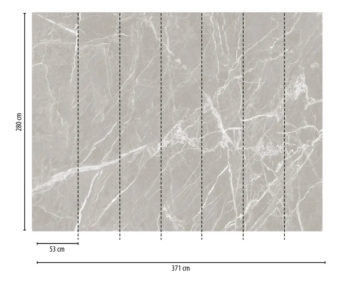 Dank der Kombination aus hochwertigem Vinyl und Vliesträgermaterial lässt sich die Tapete besonders einfach anbringen und wieder restlos trocken abziehen. Das matte Oberflächenfinish sorgt für eine authentische Marmor-Optik und eine angenehm glatte Haptik. Mit einer großzügigen Abmessung von 3,71 m x 2,80 m eignet sie sich ideal für Akzentwände in unterschiedlichsten Wohn- und Arbeitsbereichen wie Wohnzimmer, Schlafzimmer, Küche, Bad oder Büro.