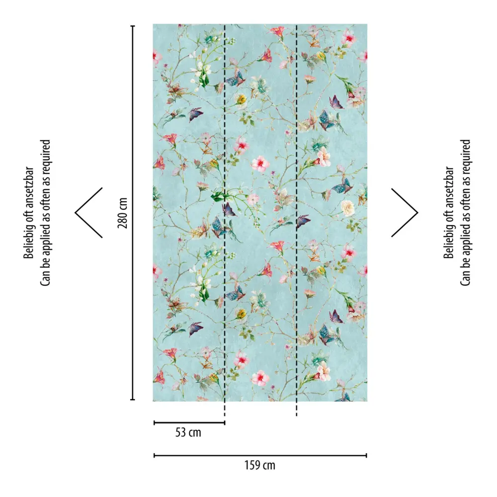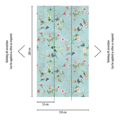 Mit ihren großzügigen Maßen von 2,80 m x 1,59 m eignet sich die Tapete ideal für Wohnzimmer, Schlafzimmer, Küche, Bad oder Büro. Dank des ansatzfreien Rapports gestaltet sich das Tapezieren besonders einfach und ermöglicht ein durchgängiges Musterbild ohne sichtbare Ansätze.