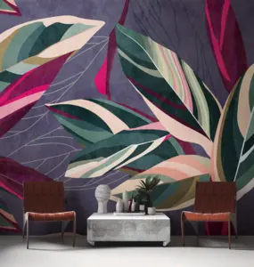 Setzen Sie ausdrucksstarke Akzente mit der Livingwalls Vinyltapete von A.S. Création. Das exotische Dschungelmotiv vereint elegante Lila- und Grüntöne mit modernen Farbakzenten in Pink, Beige und Weiß. Die Tapete überzeugt durch eine matte, glatte Oberfläche und höchste Lichtbeständigkeit, sodass die Farben langfristig ihre Strahlkraft bewahren.
