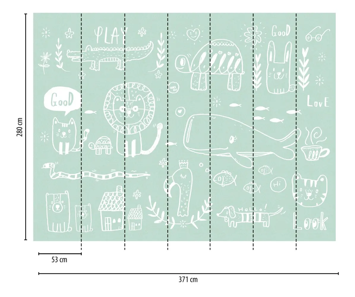 Die Vinyltapete Livingwalls 383041 von A.S. Création kombiniert ein stilvolles Design mit funktionalen Vorteilen. Das Dekor in Grün und Weiß zeigt ein verspieltes Tiermotiv und eignet sich besonders für das Kinderzimmer. Die matte Oberfläche sowie die glatte Struktur sorgen für eine moderne Optik und ein angenehmes Raumgefühl.