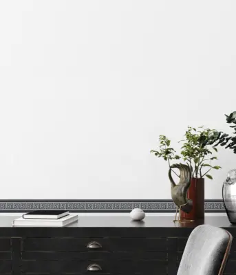 Mit der A.S. Création Tapetenbordüre 383921 setzen Sie klare, moderne Akzente an Wand und Decke. Das geometrische Muster in Schwarz mit dezentem Metallic-Effekt wirkt elegant und strukturiert Räume optisch – ideal für stilbewusste Wohn- und Arbeitsbereiche.