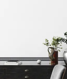 Die leicht glänzende, strukturierte Oberfläche sorgt für eine hochwertige Anmutung und unterstreicht die grafische Gestaltung durch feine Lichtreflexe. Dadurch wirkt die Bordüre je nach Lichteinfall lebendig, ohne aufdringlich zu sein.