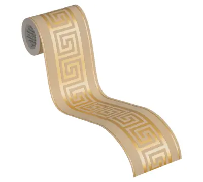 Setzen Sie stilvolle Akzente an Wand und Decke: Die A.S. Création Bordüre 383938 verbindet ein geometrisches Muster mit einem edlen Gold-Metallic-Effekt und warmen Braunnuancen. Die leicht glänzende, strukturierte Oberfläche erzeugt Tiefe und verleiht dem Raum eine hochwertige, moderne Anmutung.