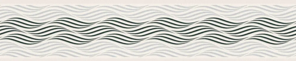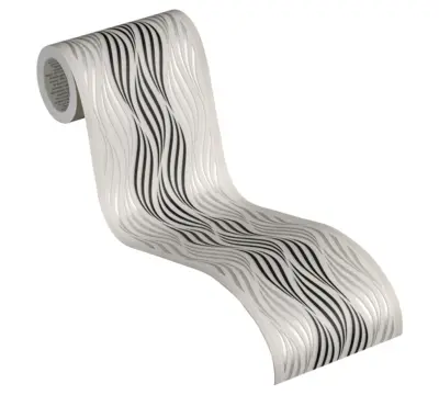 Die A.S. Création Bordüre 384126 setzt elegante Akzente an Wand und Decke. Das stilvolle Wellen-Design in Schwarz mit metallischem Schimmer und feinen weißen Nuancen wirkt modern und hochwertig. Die matte Oberfläche unterstützt eine ruhige, edle Optik, während die leicht strukturierte Ausführung dem Raum zusätzliche Tiefe verleiht.