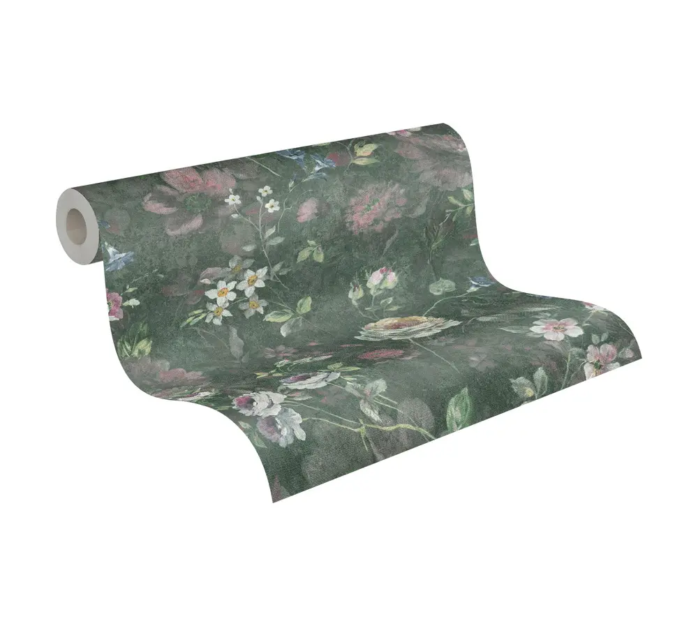 A.S. Création Vinyltapete 386362 – Stilvolles florales Design in Grün, Weiß und Rosa