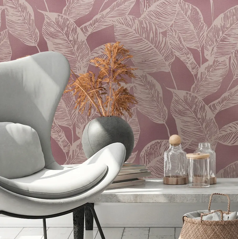 Dank ihrer guten Lichtbeständigkeit und der waschbeständigen Oberfläche eignet sich die Tapete optimal für Räume wie Wohnzimmer, Schlafzimmer, Küche, Badezimmer und Büro. Die leicht strukturierte Oberfläche betont das Blattmotiv und sorgt für einen modernen, natürlichen Look an der Wand.